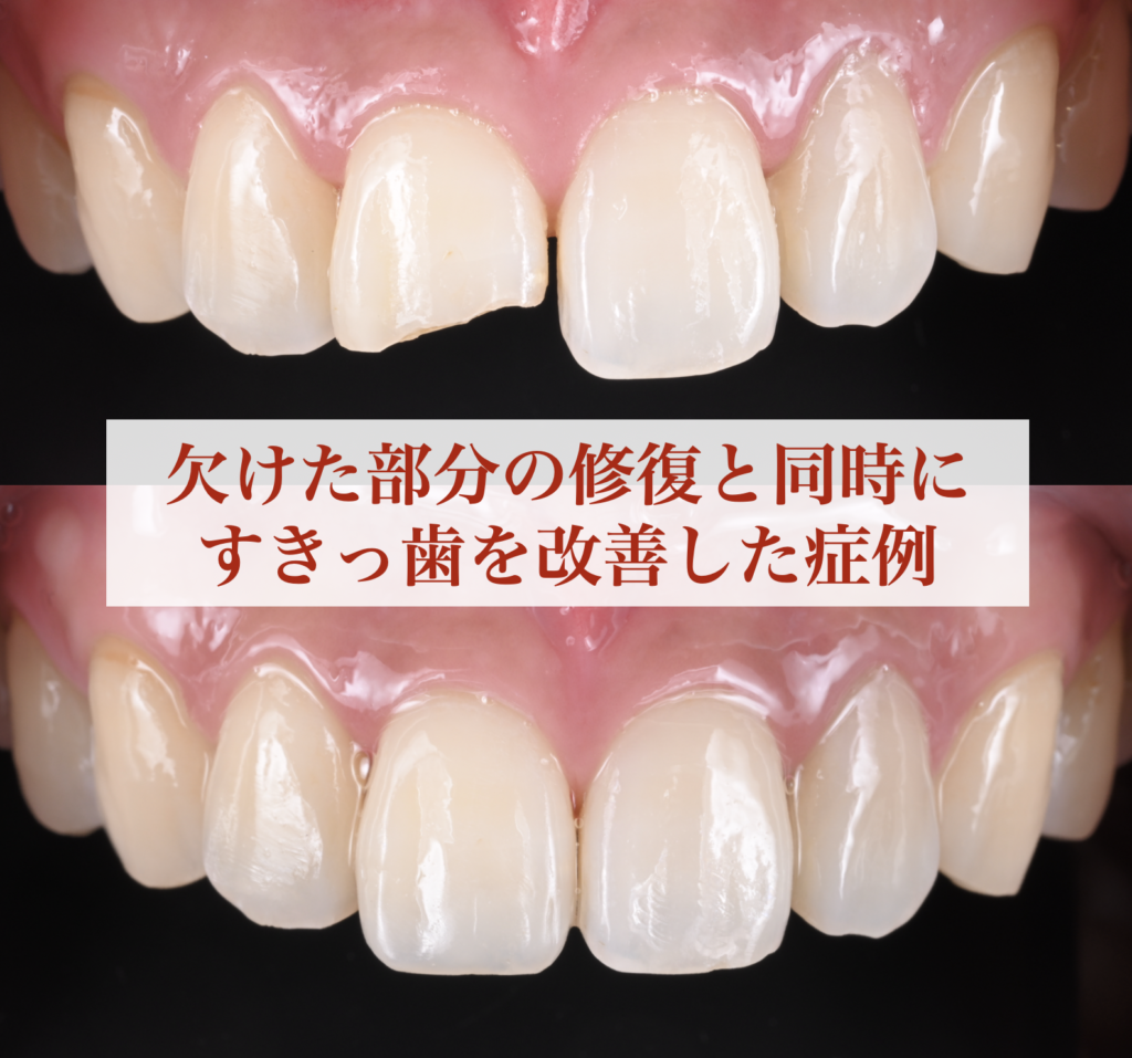 前歯の欠けとすきっ歯を同時に改善した症例